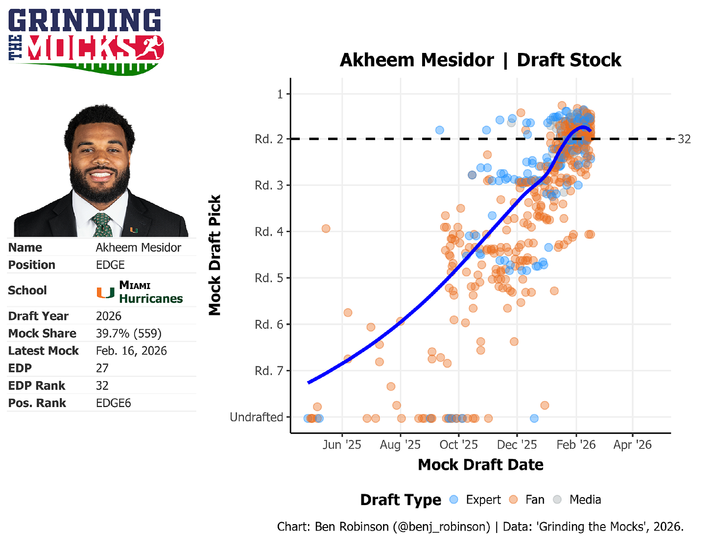 Akheem Mesidor, EDGE, Miami (25th Post-Deadline → 32nd Pre-Combine)