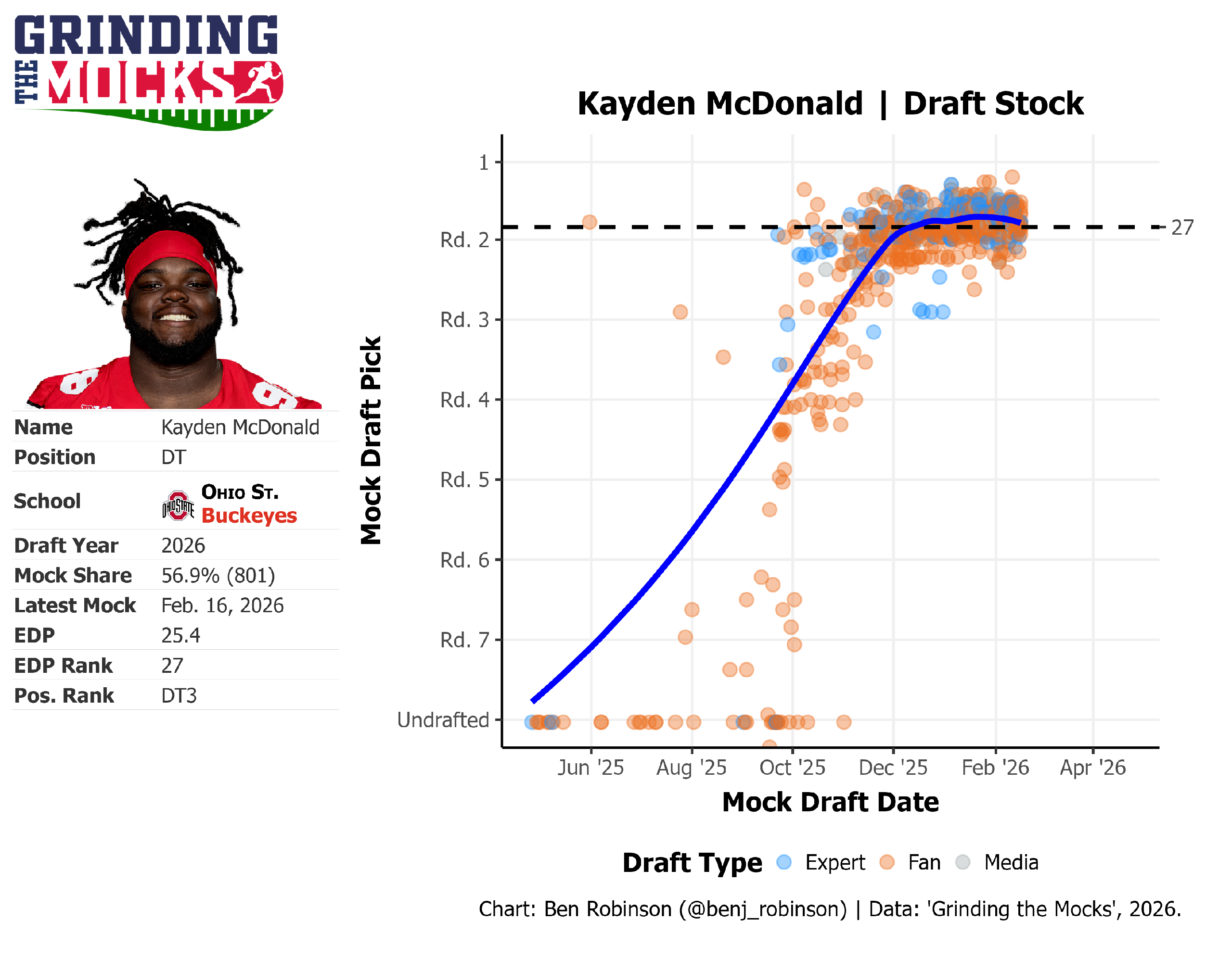 Kayden McDonald, DT, OSU (23rd Post-Deadline → 27th Pre-Combine)