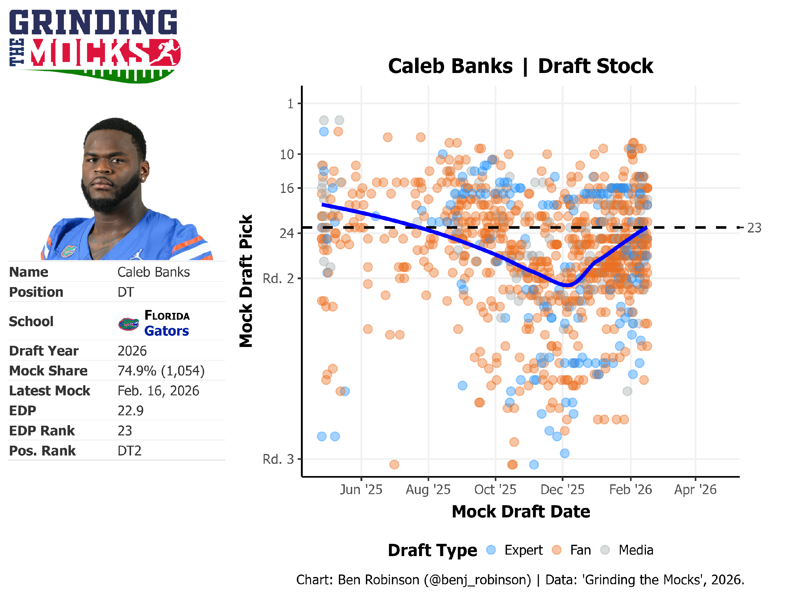 Caleb Banks, DT, Florida (28th Post-Deadline → 23rd Pre-Combine)