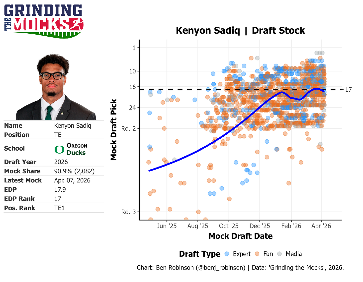 Kenyon Sadiq, TE, Oregon (12th Post-Combine → 17th Two-Weeks Out)