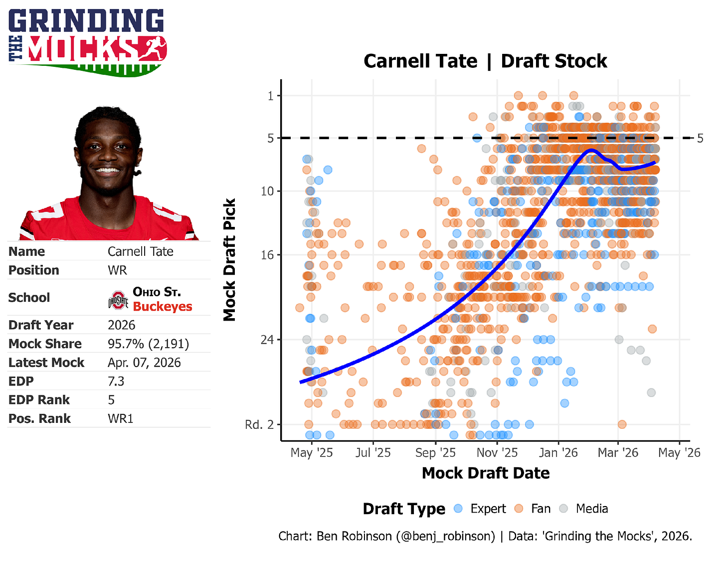 Carnell Tate, WR, Ohio State (9th Post-Combine → 5th Two-Weeks Out))