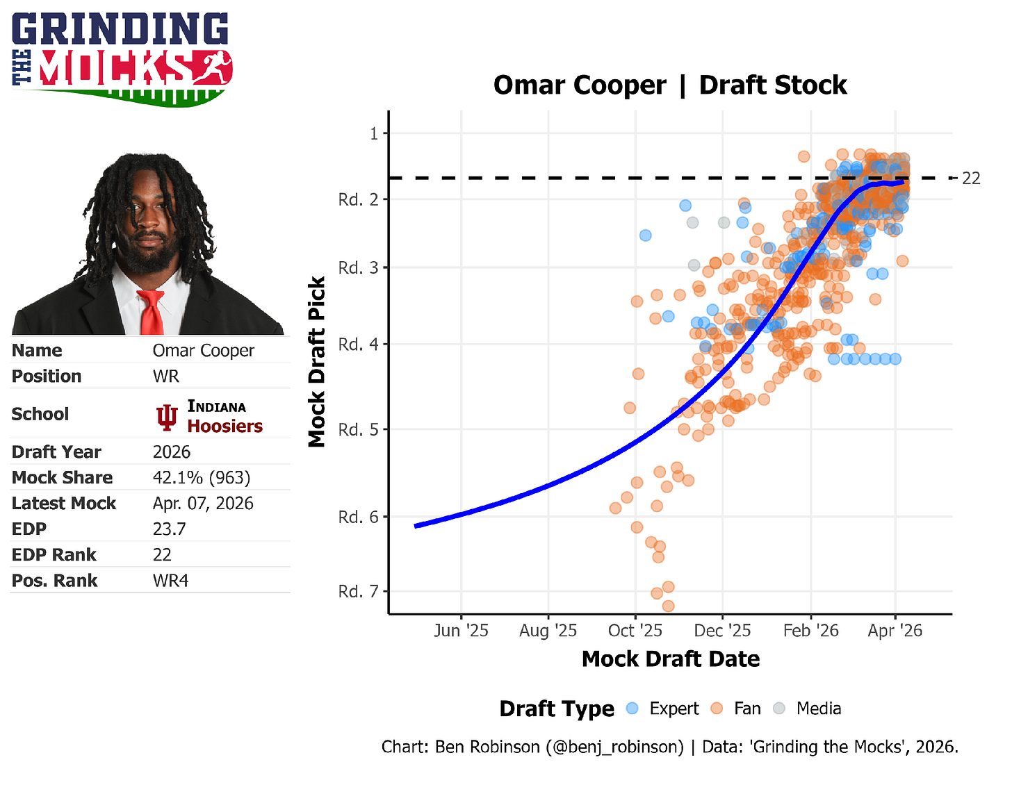 Omar Cooper, WR, Indiana (33rd Post-Combine → 22nd Two-Weeks Out)